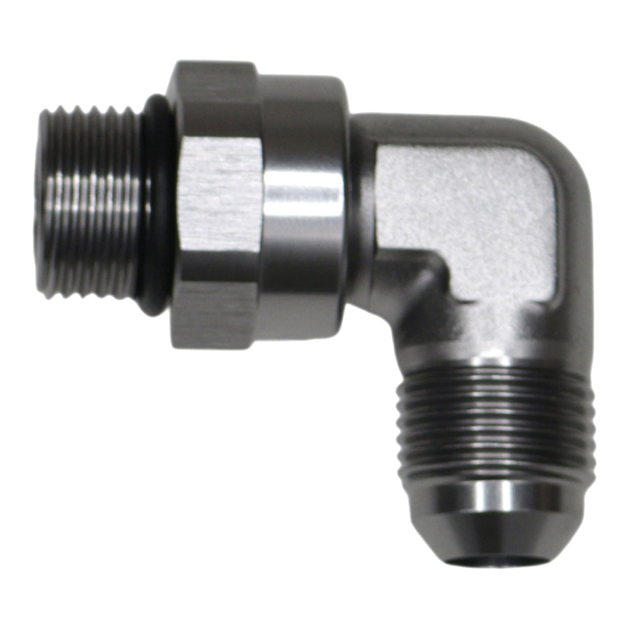8AN ORB Male Swivel to 8AN Male Flare 90-Degree Fitting, Anodized DW Titanium