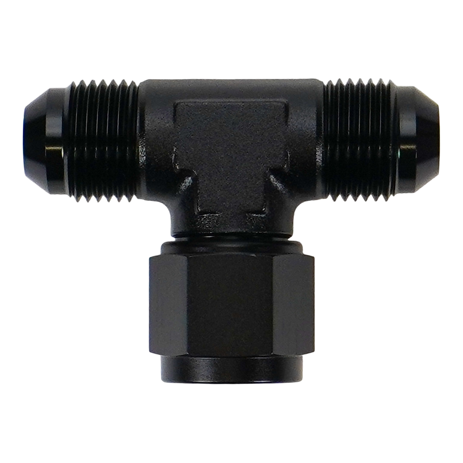 8AN Male Flare to Female Flare Swivel Tee on 90