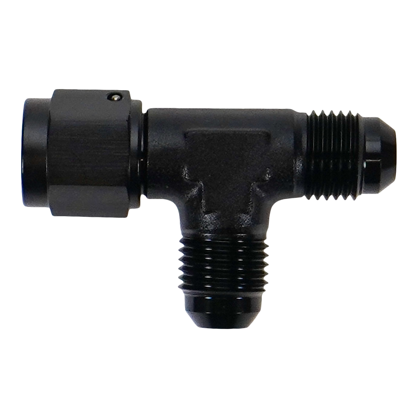 6AN Male Flare to Female Flare Swivel Tee on Straight