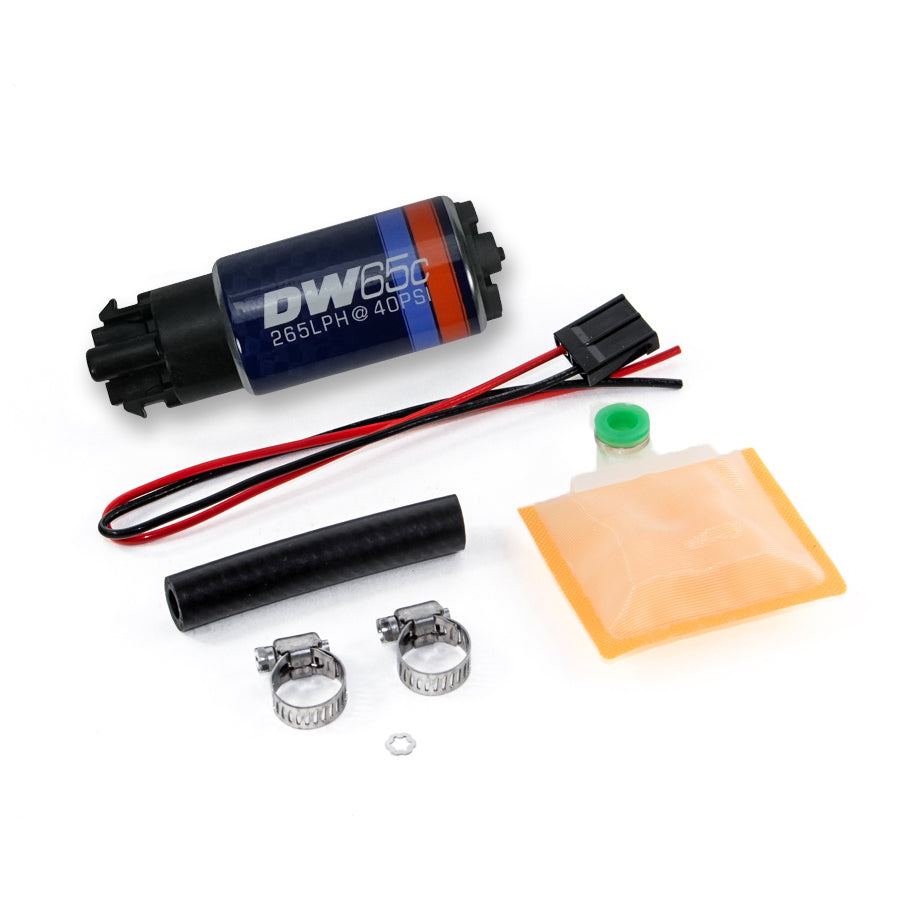 DW65C series, 265lph compact fuel pump w/ mounting clips w/ Universal Install Kit.